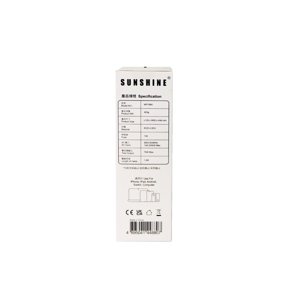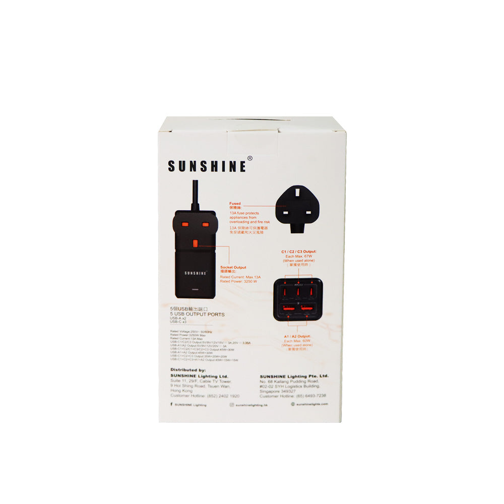 Sunshine 13A一位延長插頭拖板為你提供家中多種電器的穩定電力。