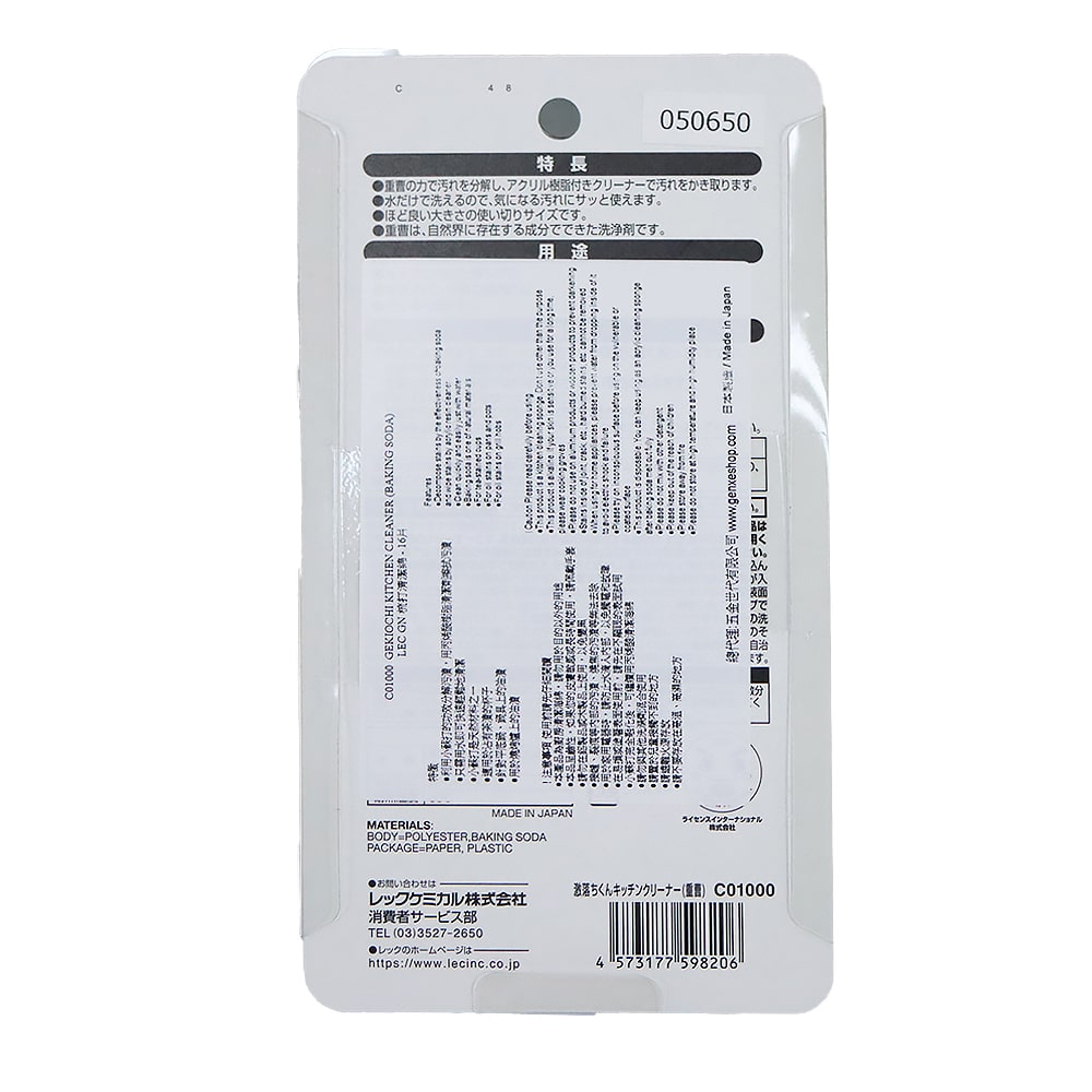 強烈刺激的化學清潔劑都沒能潔去的頑固污垢需要的可能就是針對性的除垢對策。在日本被瘋搶回購的LEC 激落君小蘇打清潔海綿針對面料和污垢的類型,無需加添任何額外清潔剷,只需一片海綿,以天然成份的清潔方式有效快捷去除並分解污垢。• 以小蘇打天然鹼性分解頑固油污與茶跡• 薄片海綿設計,更容易貼合清潔,狹窄縫隙都能輕鬆潔淨• 海綿獨特結構只需加上清水便會釋出小蘇打,方便一濕即洗• 適用於茶杯﹑水杯和廚具• 尺寸輕便薄片,適合一次性使用,即棄更衛生• 日本製造