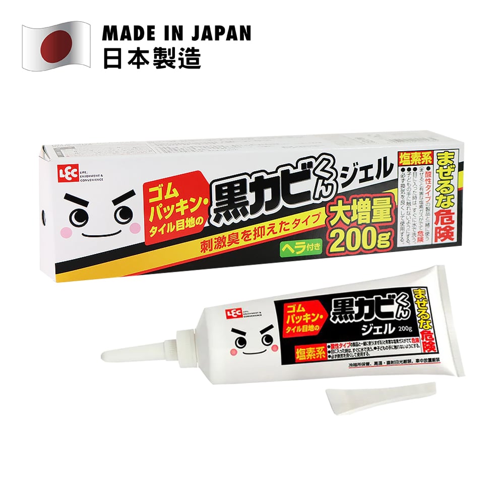 以日本家居必備的霉點剋星—LEC 黑霉君除霉清潔凝膠清除霉點絕對易如反掌!,凝膠狀去霉劑更有效黏附在霉菌的集中點,把黑霉連根拔起,即使在牆面也不易滑落或移位。一擠一刮,2步還你煥亮浴室!