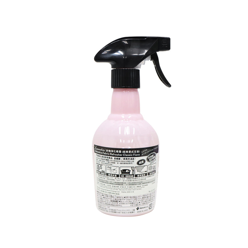 Laundrin 衣物香水淨化噴霧可以去除衣物或布製品上的細菌、病毒所散發的異味,不傷衣物纖維,特別適合用於不能經常清洗的衣物及布製傢俬,例如大褸、手袋、梳化、窗簾等。