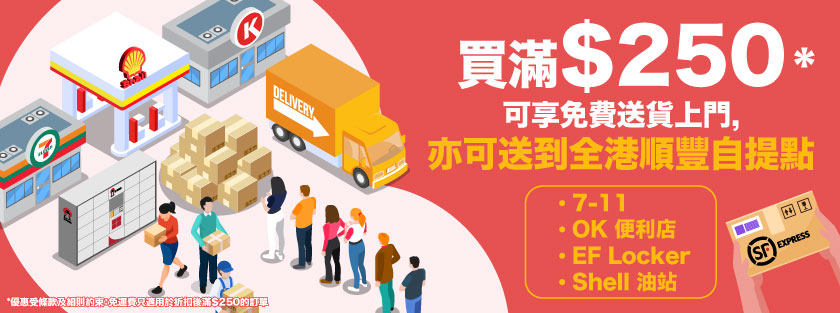 香港地區: 購物滿HK$250免運費, 澳門地區: 購物滿MOP300免運費