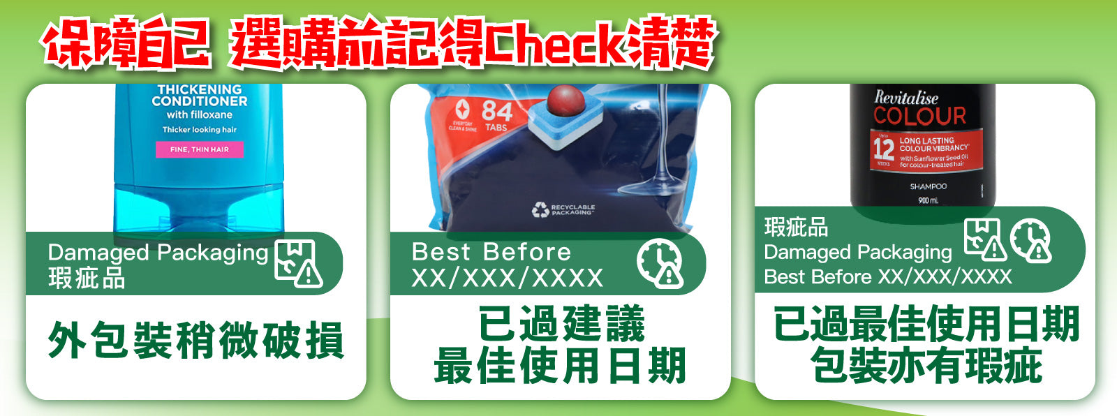 置綠之選專門銷售包裝稍微破損,及已過最佳食用日期的食品和產品。 所有最佳食用日期均列明在每件商品的頁面上。我們建議消費者盡快食用及使用購買的產品。