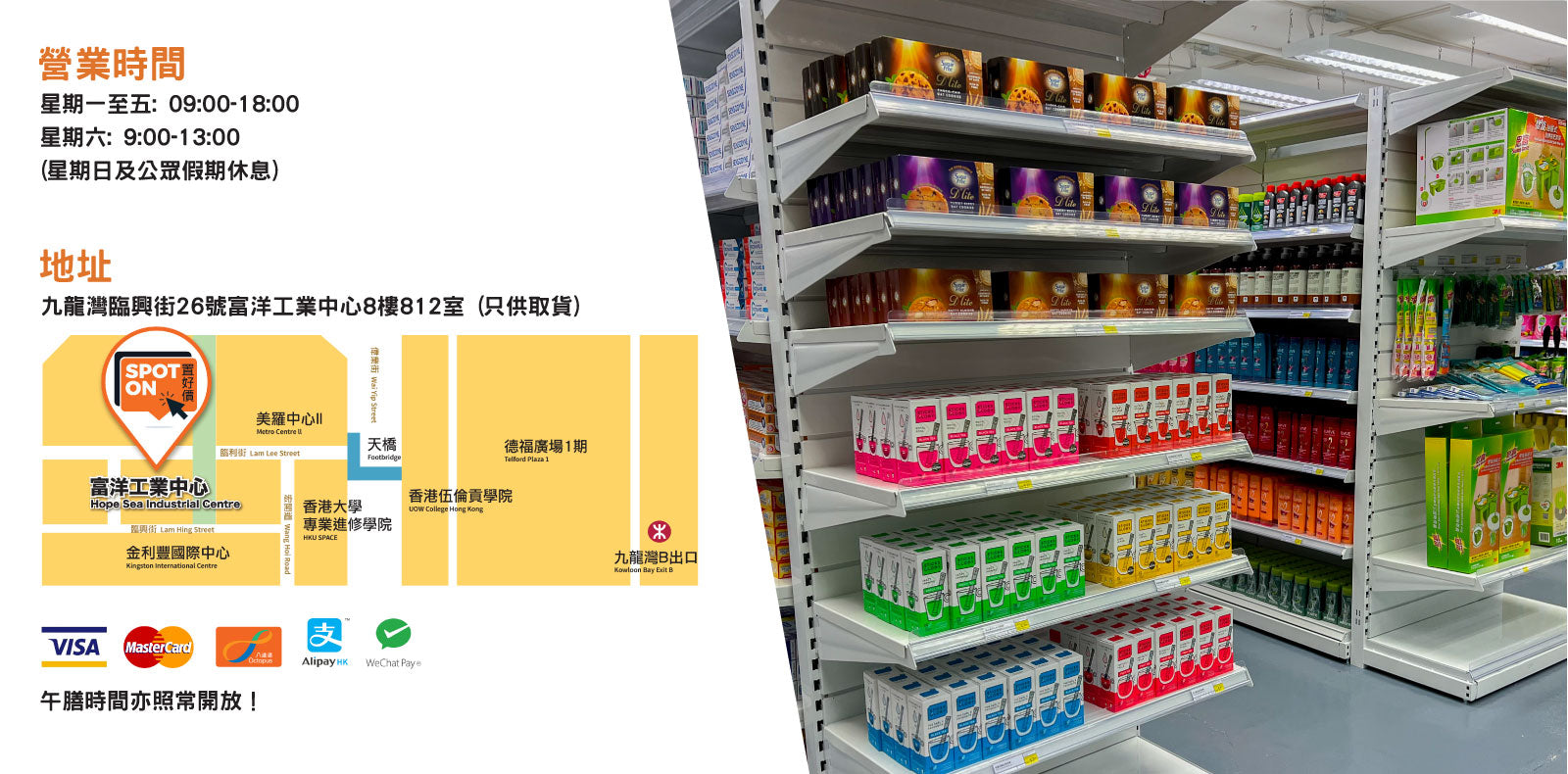 午膳時間亦照常開放,歡迎上門選購!